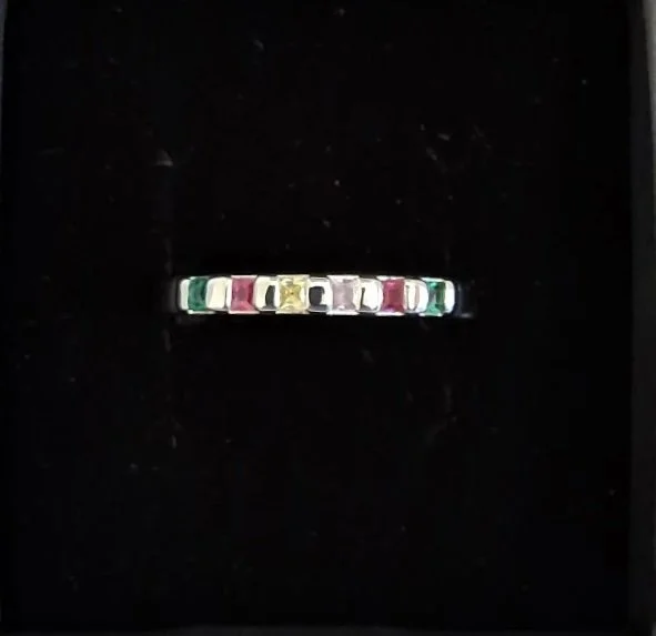 Redesign of family ring. Made with palladium bearing sterling silver for hardness and wear resistance.